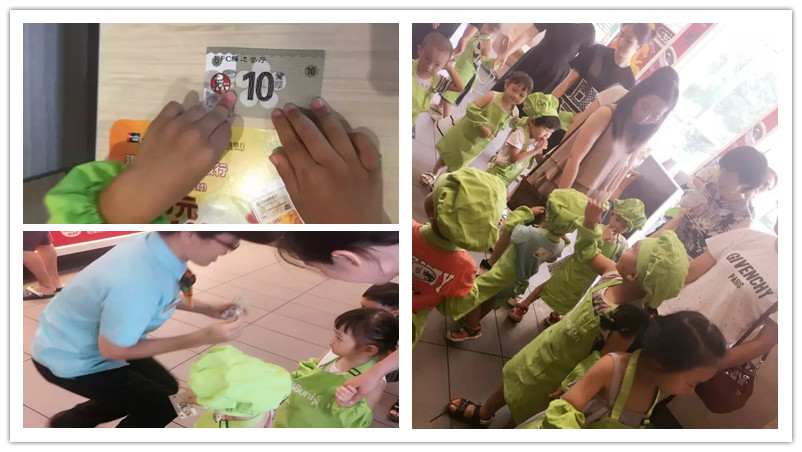 BBunion国际早教7月下旬活动回顾BBunion国际早教7月下旬活动回顾BBunion国际早教7月下旬活动回顾   小朋友还记得《贝壳的秘密》吗?乌龟先生用劳动制盐,从虾那里获得了一袋盐,然后用贝壳进行交易。小朋友今天也要和乌龟先生一样,在KFC做小小服务员,用自己的劳动换取肯币才能换取食物呢。